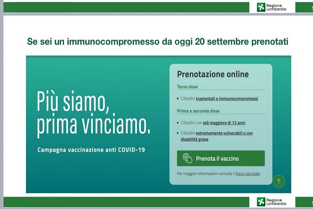 “Le nuove disposizione sul green pass – ha detto l’assessore regionale al Welfare – hanno richiesto di rendere disponibili nuove vaccinazioni per 1° dosi, per cui è prevista dal 1° ottobre al 30 ottobre una fase di transizione. Inizia quindi la Fase 3 con circa 2.000 somministrazioni al giorno a pazienti immunocompromessi per la prima”.