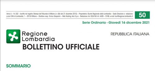 Sperando di fare cosa gradita vi inoltriamo le novità pubblicate sul Bollettino Ufficiale di Regione Lombardia di Giovedì 16 Dicembre 2021.