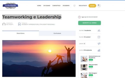 La prima parte del corso di Teamworking e Leadership si prefigge come obiettivo di insegnare i metodi per creare un team. Verranno individuati i sette fattori cruciali per un lavoro di gruppo efficace e si affronterà il concetto di potenziale umano e individuale, parlando della leadership e del teamworking come caratteristiche personali. Nella seconda parte del corso verrà approfondito il concetto della leadership e la contrapposizione tra leader e manager.
