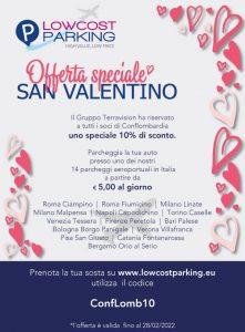 Prenota la tua sosta su www.lowcostparking.eu utilizza il codice. ConfLomb10.