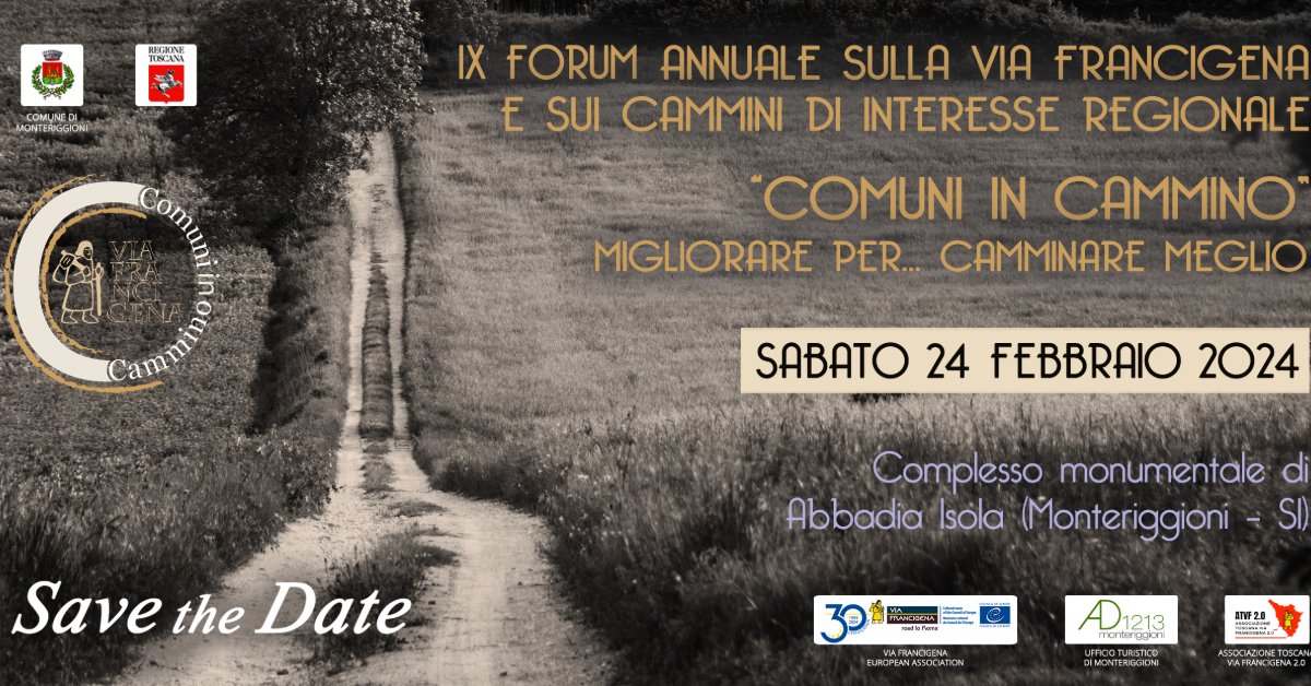 Sabato 24 febbraio 2024 presso il complesso monumentale di Abbadia Isola a Monteriggioni (SI), è in programma il IX Forum annuale “Comuni in cammino. Migliorare per… camminare meglio”.