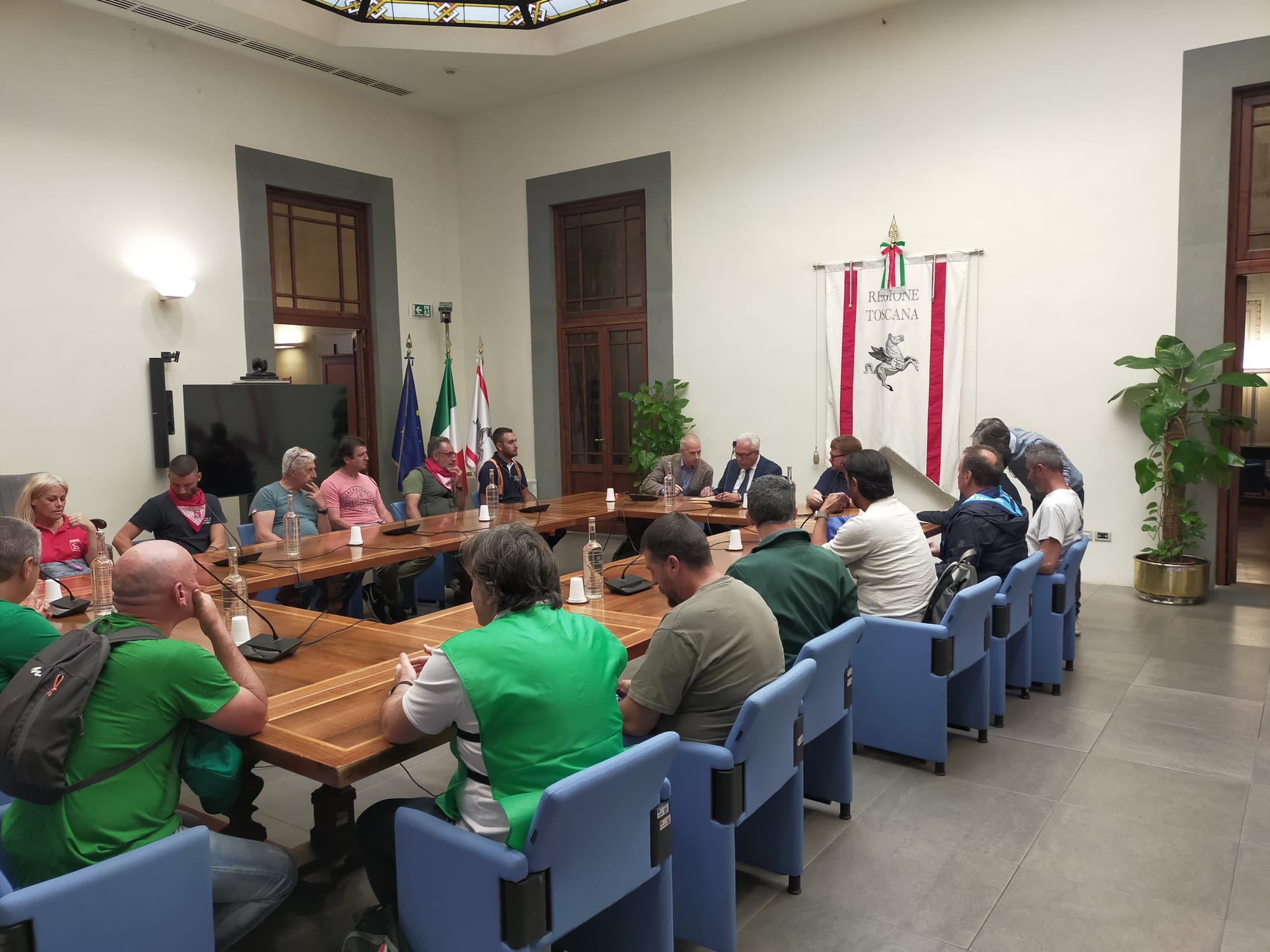 Saranno garantite le retribuzioni degli operai forestali della Toscana. Lo ha assicurato il presidente della Regione che stamani ha ricevuto una delegazione dei lavoratori e dei sindacati in un incontro avvenuto a margine della loro protesta avvenuta davanti a Palazzo Strozzi Sacrati. Al tavolo, anche il delegato Anci Toscana in rappresentanza delle Unioni dei Comuni.